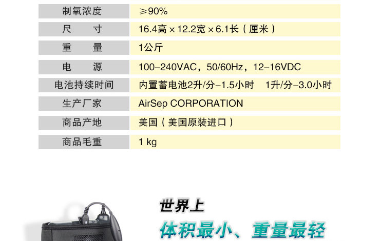 "美国亚适AirSep" 便携式制氧机 产品特点