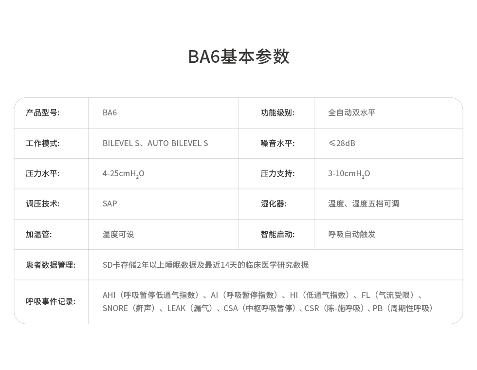 和普乐(hypnus) 呼吸机 全自动双水平BA6家用呼吸机 打鼾打呼噜止鼾器睡眠
